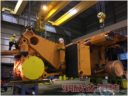 湘潭650噸礦山車出口澳洲,采用熱收縮防銹,發(fā)動(dòng)機(jī)整體防護(hù),其他出口熏蒸木箱打包裝箱,我司負(fù)責(zé)從包裝設(shè)計(jì)方案,現(xiàn)場(chǎng)打包及運(yùn)輸一站式服務(wù),省去客戶其他多環(huán)節(jié)的操作,省時(shí)省力高效率節(jié)成本?!?